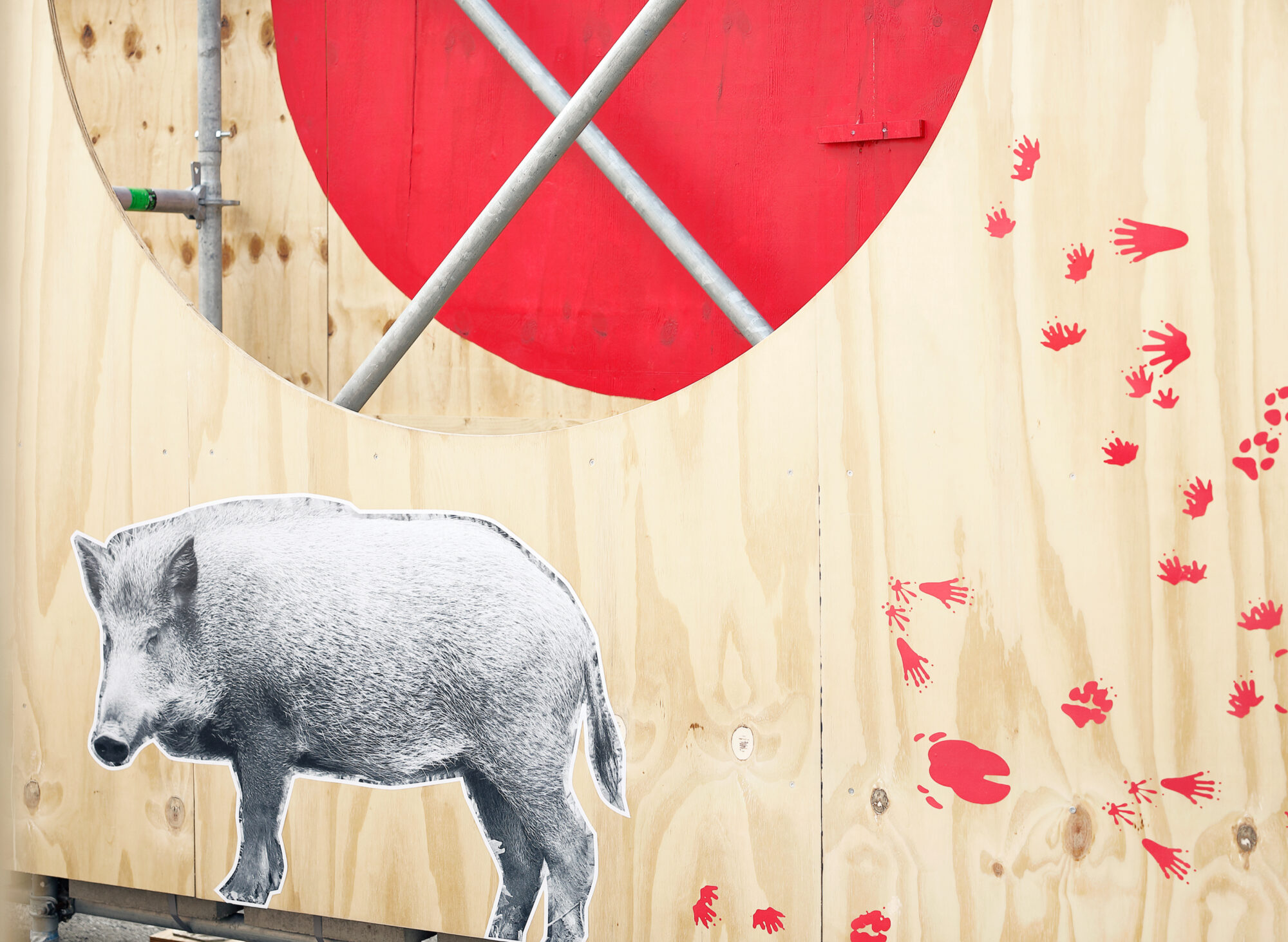 The visual interpretation is guided by the project’s objective: making everyday inter-connections between research and society visible through the visual integration of science into the cityscape. The poster-like hanging emphasises the low-threshold access to information, the cut-outs used symbolise the possibilities of insight. The high visual accessibility of this format facilitated a playful and barrier-free approach to abstract scientific topics.